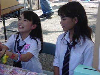 一生懸命サイン書きをする2人を後ろから団扇で扇ぐことに。