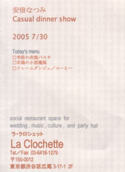7月30日(昼)安倍なつみ カジュアルディナーショー